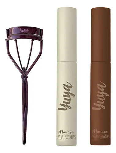 Set máscara para pestañas café y negra + Enchinador Yuya